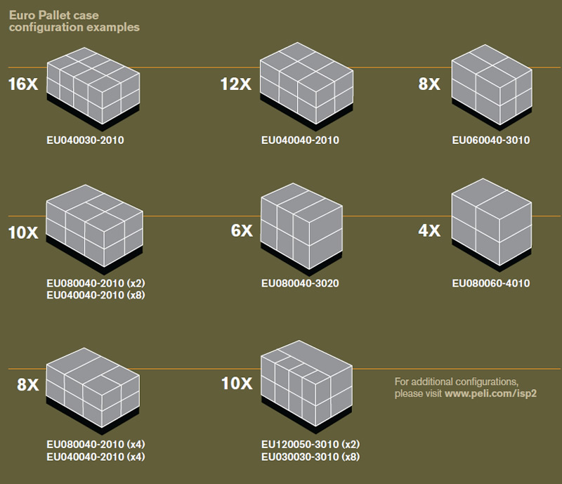 | Dostosowane do standardowych palet NATO o wymiarach 1200 mm x 1000 mm różne modele skrzyń systemu ISP2 można łączyć i układać jedne na drugich, tworząc stabilne stosy. Zamocowanie pionowych żeber w ścianach skrzyń umożliwia ustawienie znacznie wyższych stosów niż w przypadku tekturowych pudeł. Dzięki temu wykorzystana zostaje przestrzeń nad ładunkiem, która w innym przypadku pozostałaby niezagospodarowana. Uchwyty wszystkich skrzyń ISP2 pozwalają usprawnić szybkość przenoszenia skrzyń w porównaniu z tradycyjnymi pojemnikami. | ![]() |
