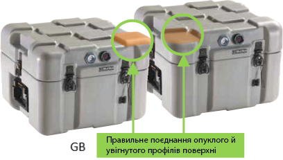 Штабелювання кейсів полегшується завдяки належному з’єднанню опуклих і ввігнутих кубічних секцій на їхніх поверхнях.