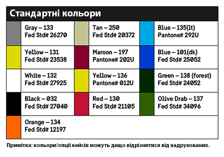 Кожному кейсу ISP2 призначено унікальний артикульний номер, що складається з 2 літер (EU) та 10 цифр. Ці цифри можна розділити на 4 групи, що позначають довжину, ширину, основу та глибину кейса. Див. рисунок нижче з докладнішим поясненням.